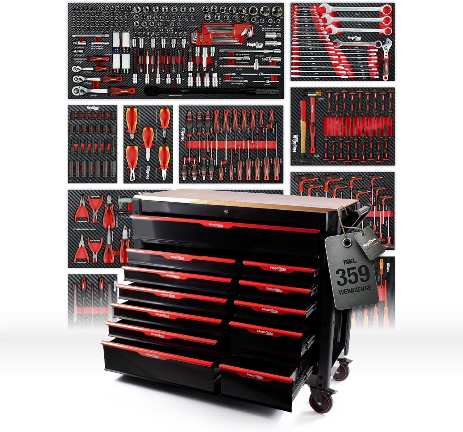Mephisto Pro-Line BIG Servante d'atelier avec 12 tiroirs Dont 11 Outils tels Que Tournevis VDE, cliquet avec boîte à Douilles, Jeu de Tournevis, etc. dans des incrustations Souples en Carbone Lock